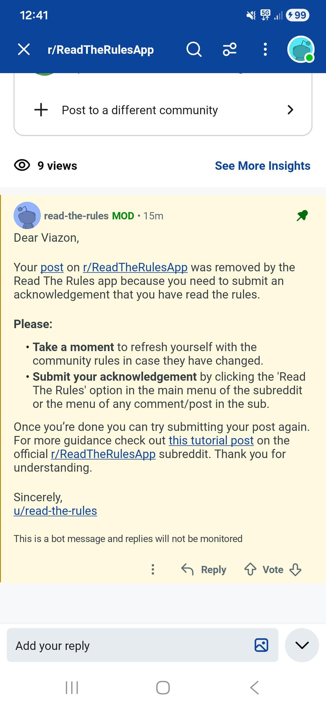 Was having issue acknowledging that I've read the rules on a subreddit, so went to this subreddit for help, which I was directed to if it said I was having trouble. Only to be told I need to do the ae thing before I can actually post on that subreddit. Seems kind of dumb. u/MrTommyPickles and u/read-the-rules explain yourselves.